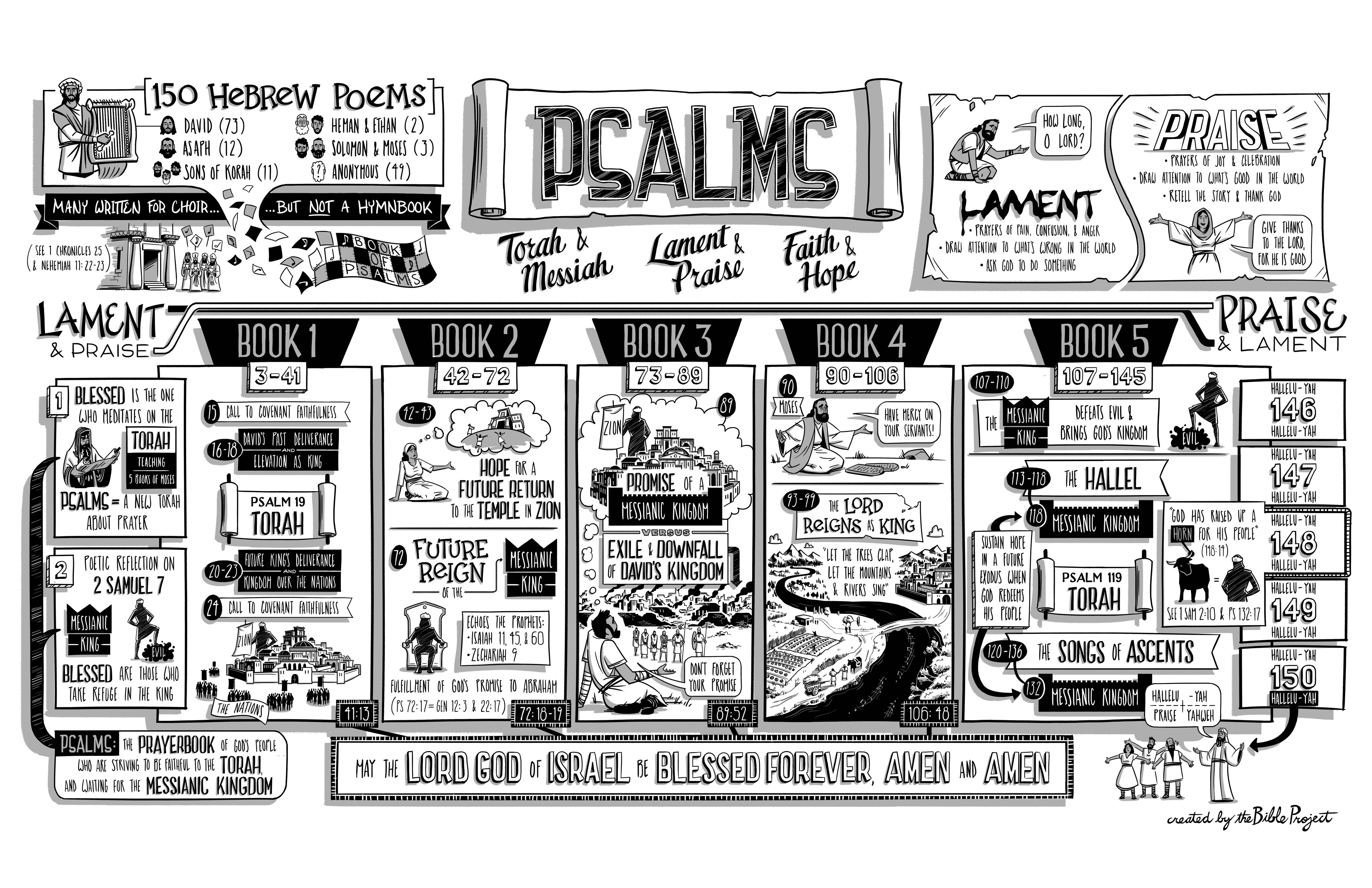 As you work through the Psalter, note where each book begins and ends. Pay attention to the themes that emerge in each section. You may also want to diagram the structure in your journal. The Bible Project has some really helpful resources on the structure of the Psalms here.